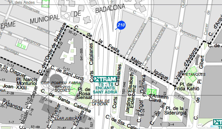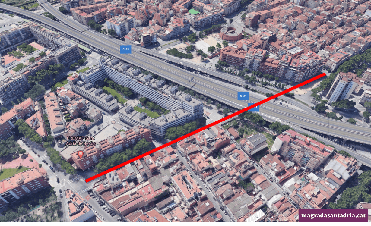A més, com podeu observar a la imatge anterior, també és un dels pocs carrers que pertany a dos barris: Sant Adrià Nord i Sant Joan Baptista.